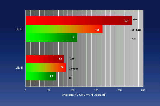 A comparison of hydrocarbon columns against sealing faults and leaking faults demonstrates that larger columns are trapped against sealing faults. Leaking faults have columns limited by JUXTAPOSED LITHOLOGY LEAK POINTS.